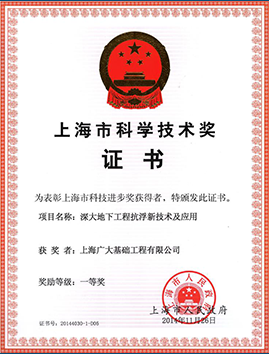 上海廣大基礎(chǔ)工程有限公司是一家集科研、施工為一體的具有專業(yè)特色的大型施工企業(yè),具有地基基礎(chǔ)工程專業(yè)承包一級(jí)資質(zhì),上海市高新技術(shù)企業(yè),上海市建筑施工行業(yè)協(xié)會(huì)會(huì)員單位、上海市土木工程學(xué)會(huì)團(tuán)體會(huì)員、上海市SMW工法協(xié)會(huì)常務(wù)理事單位、TRD工法協(xié)會(huì)會(huì)長(zhǎng)單位、大直徑高壓旋噴樁協(xié)會(huì)會(huì)員單位、靜鉆根植樁技術(shù)發(fā)展研究會(huì)副會(huì)長(zhǎng)單位、微擾動(dòng)四軸攪拌樁(DMP工法)研究會(huì)會(huì)員單位。